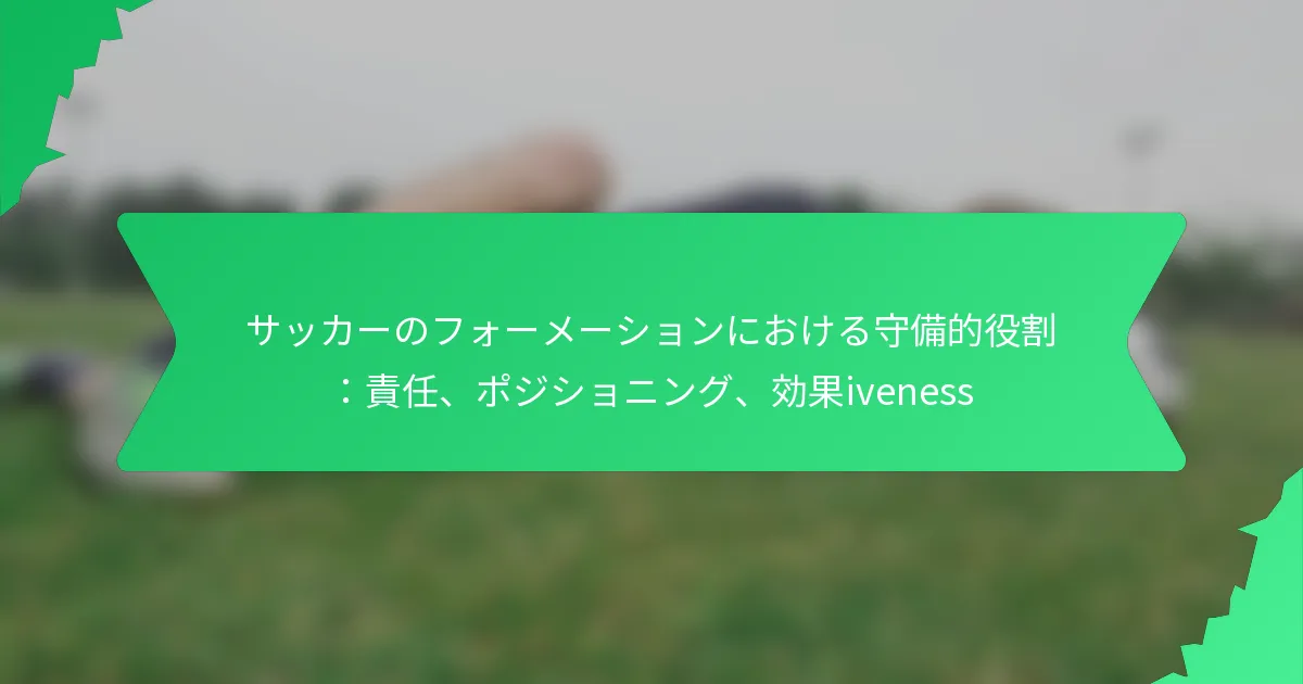サッカーにおいて、守備の役割は強固な守備構造を維持するために不可欠であり、重要なポジションにはセンターバック、フルバック、守備的ミッドフィールダーが含まれます。各役割には、相手チームが得点するのを防ぐために重要な特定の責任とポジショニング戦略があります。これらの役割を効果的に実行することで、チームは全体的な守備の効果を高め、さまざまな攻撃の脅威に適応することができます。