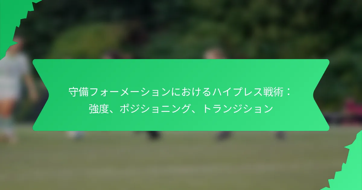 ディフェンシブフォーメーションにおけるハイプレス戦術は、相手に対してピッチの高い位置で強いプレッシャーをかけ、相手のビルドアッププレーを妨害し、迅速にボールを奪い返すことを目的としています。この戦略は、選手のポジショニングと連携に依存しており、ターンオーバーを強いることの重要性を強調し、コンパクトさと意識を維持することが求められます。これらの戦術の効果は、選手がどれだけ強いプレッシャーをかけるかによって大きく影響され、試合中の素早いトランジション能力にも影響を与えます。