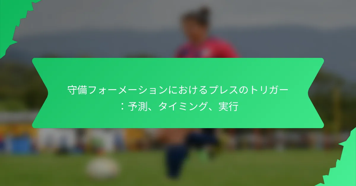 プレスのトリガーは、チームがどのように、いつプレッシャーをかけるかに構造を提供することで、守備戦略において重要な役割を果たします。これらのトリガーを認識することで、選手は迅速かつ決定的に行動し、ボールを奪い返すチャンスを高めることができます。